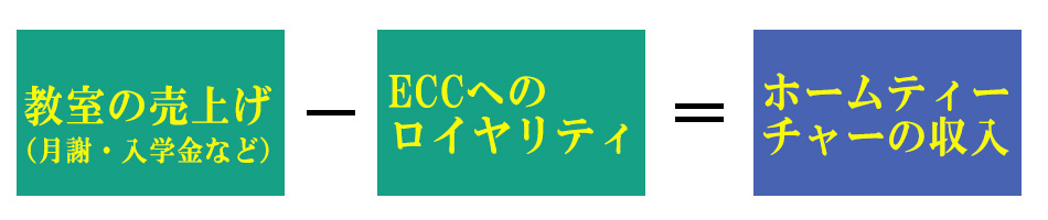 貴方が開く英会話教室の売上から、ECCへのロイヤリティを除いた金額が、ホームティーチャーの収入になります。